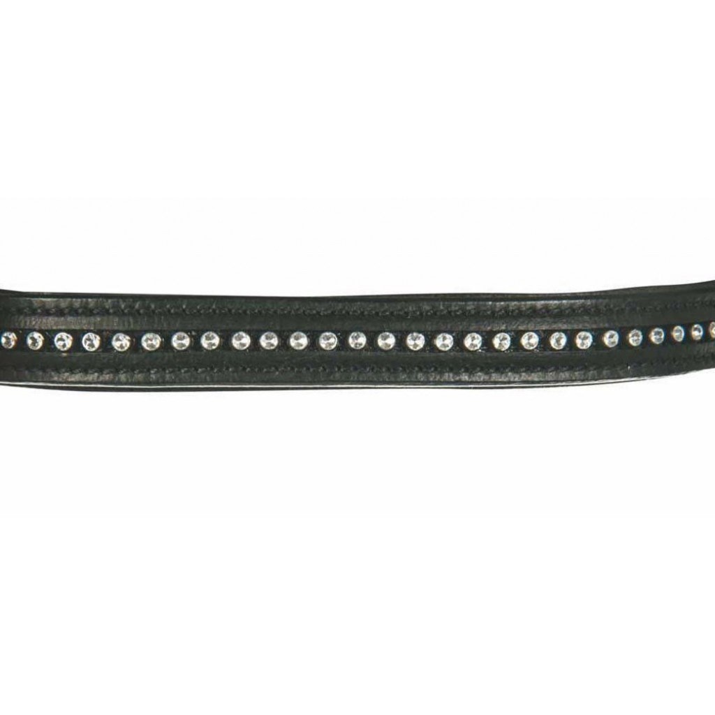 - kožené otěže se zarážkami - anglický nánosník - kování stříbrné barvy - osazeno jemnými kameny - hovězina - bez udidla